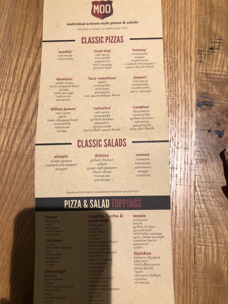 MOD Pizza Rancho Cucamonga Menu (Update 2025)